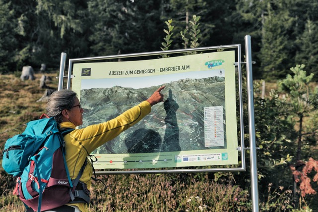 Fliegen kann man aber natürlich auch von den Bergen rund ums Drautal, sogar selber, mit Gleitdrachen etwa. Wenn man sich traut. Tun wir nicht, auch wenn der Ausblick vom Startplatz am Fuße der Emberger Alm. Stattdessen wandern wir bergan zum Nassfeldriegel, des Blicks und der Kalorienverbrennung wegen, die Kärntner Küche wird es am Abend wieder richten. Als sach- und ortskundige Führerin hat sich Waltraud Sattlegger zu uns gesellt, auch wenn ihre Firma Drausport heißt ist sie doch heroben an der Waldgrenze aufgewachsen. Und kennt sich ergo auch mit Flora und Fauna aus, weiss über den Unterschied von Schneehuhn und Schneehendl, die lohnendsten Schwammerlplätze, heilende Kräuter sowie die richtige Reife der Preiselbeeren Bescheid. Aus der angepeilten Stunde werden so deren Drei, noch besser, meint sie, wären natürlich drei Tage, dann könnte man zu den zwei Seen und aufs Kreuzeck marschieren und den Großglockner von seiner schönsten Seite sehen.