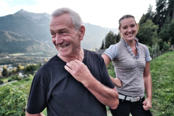 Und weil es nun mal anstrengender ist die Drau rauf als runter zu Paddeln steigen auch wir aufs Rad, retournieren werden wir es dann in der Radlerstation Sandhof, gleich neben dem Golfplatz daheim in Berg. Vorher machen wir aber noch einen steilen Abstecher zum idyllischen Weissensee und, für Genießer sicher noch verlockender, zur Buschenschenke Hupfa. Den Hupfabrenner Hof bewirtschaftet, seit er aus dem Mur- ins Drautal geheiratet hat, Jakob Grasser mit seiner Familie. Dass der Weinbau schon vor 1000 Jahren urkundlich erwähnt aber bei seiner Ankunft nicht mehr existent war hat den vinophilen Steirer nicht ruhen lassen, die Lage des Hofes am Südhang war jedenfalls bestens geeignet für den Wiederanbau.