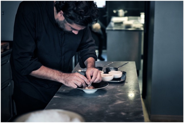 Nach Wien getrieben hat es auch Juan Amador, bei ihm war es die Liebe. Und der Wunsch aus der Süddeutschen „Provinz“ in eine Großstadt zu ziehen, wo es dann doch einfacher ist auf hohem Niveau zu kochen und die nötige Klientel zu finden um dieses halten zu können. „Berlin wäre eine Möglichkeit gewesen, doch dort ist es mir etwas zu hektisch, die Stadt eignet sich besser für junge Wilde bis 40, während der Wiener Lebensstil auch meinem spanischen Naturell viel näher liegt. Außerdem ist meine große Liebe auch Österreicherin, war also eine leichte Entscheidung!“ Wobei die Gattin aus Vorarlberg und also eigentlich nicht weit von Juans Heimat, dem Schwabenland, stammt. Womit Amador gleich ein paar weitere Einflüsse aus der Ferne nach Wien mitbringt, neben dem Schwäbischen sind es die andalusischen Gene die seinen Stil prägen. Dazu passt auch sein an einen Torrero erinnerndes Logo, gekrönt wird es vom geschwungenen Horn des iberischen Rindes. Welche auch die Klammer um die baskische und katalanische Kochtradition bilden in welcher sich Juan eingebunden sieht.