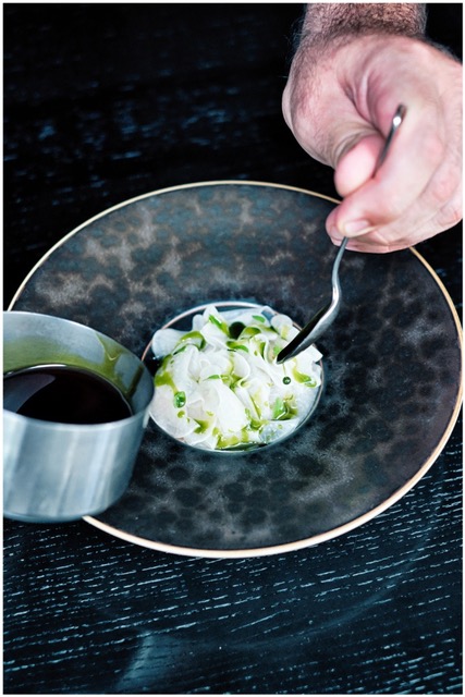 Die österreichische Küche war ihm als Schwaben durchaus vertraut, nicht zu Unrecht heißt das diesbezügliche Standardwerk von Katharina Prato aus dem Jahre 1861 „Die Süddeutsche Küche“, dort finden sich unter anderem unzählige Gerichte mit Innereien, die mittlerweile auch in der Haute Cuisine zum Standardreppertoire gehören und manchmal auf Amadors Karte zu finden sind. Auch an den Tafelspitz hat er sich gewagt, natürlich vom Ozaki Beef und mit den originalen jedoch neu interpretierten Beilagen Spinat und Semmelkren serviert, auch aus dem klassischen Gulasch wurde unter Juans Regie ein neu komponiertes Gericht mit Steinbutt. „Und dann habe ich erfahren, dass Wien einst die Schneckenstadt schlechthin war. Das Produkt kannte ich gut aus dem Elsass, gleich hinter der Grenze zu Schwaben. Und hier habe es in der fantastischen von Andreas Gugumuck hergestellten Qualität hier wiederentdeckt!“ Und so finden sich die Wiener Schnecken nun gemeinsam mit Jakobsmuscheln im Sinne der spanischen Mar e Montana Küche und an seine Mannheimer Zeit erinnernd in einem „Laubfrosch“ genannten, die Wiener Küche um ein paar neue Schattierungen bereichernden Gericht wieder.
