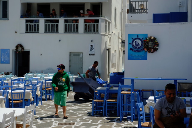 Deswegen, liebes Ehepaar Müller aus Dortmund: sorry! Ich konnte ihnen zwar das Gate epsilon tessera (E4) zeigen wo´s zu den Kykladen ging, doch die modernen, sauberen Fähren sind Wochen vorher schon ausgebucht. Also: rechtzeitig buchen, Agenten gibt´s genug, und einer hat sogar schon e-mail (addresse im anhang).