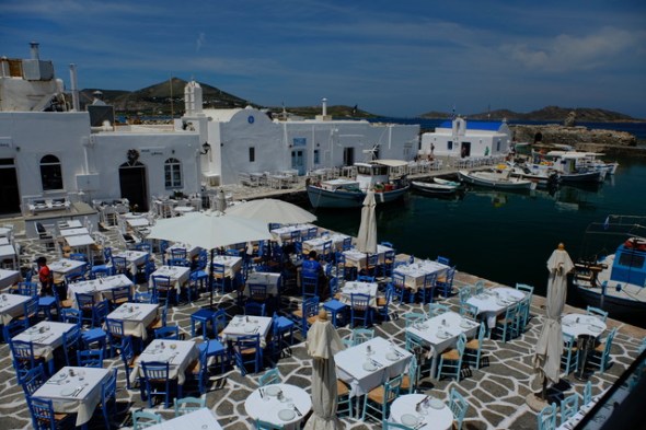 Während Walter am Fenster in der Sonne wegdöst fragt ein älteres Pärchen deutscher Zunge, ob wir, da wir doch auch in den Hafen führen, vielleicht wüssten, wo die Schiffe nach Naxos abführen, sie müssten aber noch Tickets kaufen, was aber ausserhalb der Hochsaison doch kein Problem sein sollte. Also, Klartext: Ostern ist DIE Hochsaison. Für viele Griechenland-Fans ist dies ohnedies die beste Zeit, das Land ohne Sonnenstich zu geniessen. Und die Schönheit der blühenden Landstriche zu preisen, hiesse diese putzigen Vögelchen auf die Reise in ebendiese Stadt zu tragen. Nur: alleine wird man kaum reisen. Da Religion in Griechenland, noch, eine gesellschaftliche Funktion erfüllt, und Ostern die erste Gelegenheit nach dem Winter darstellt, Freunde und Familie zusammenzubringen, reist man aus den Städten, in die einen nur ökonomische Zwänge getrieben haben, zurück in die Dörfer der Jugend. Oder wenigstens auf die Inseln der jährlichen Sommerfrische. Und weil die Familien noch Grosse sind, weitverzweigt und vielverschwägert, und Griechen nichts mehr schätzen als ihre „parea“, was soviel heisst wie Freundeskreis, und nicht weniger bedeutet, als eine ausgewählte Version einer Grossfamilie, findet jährlich eine Völkerwanderung grössten Ausmasses statt.